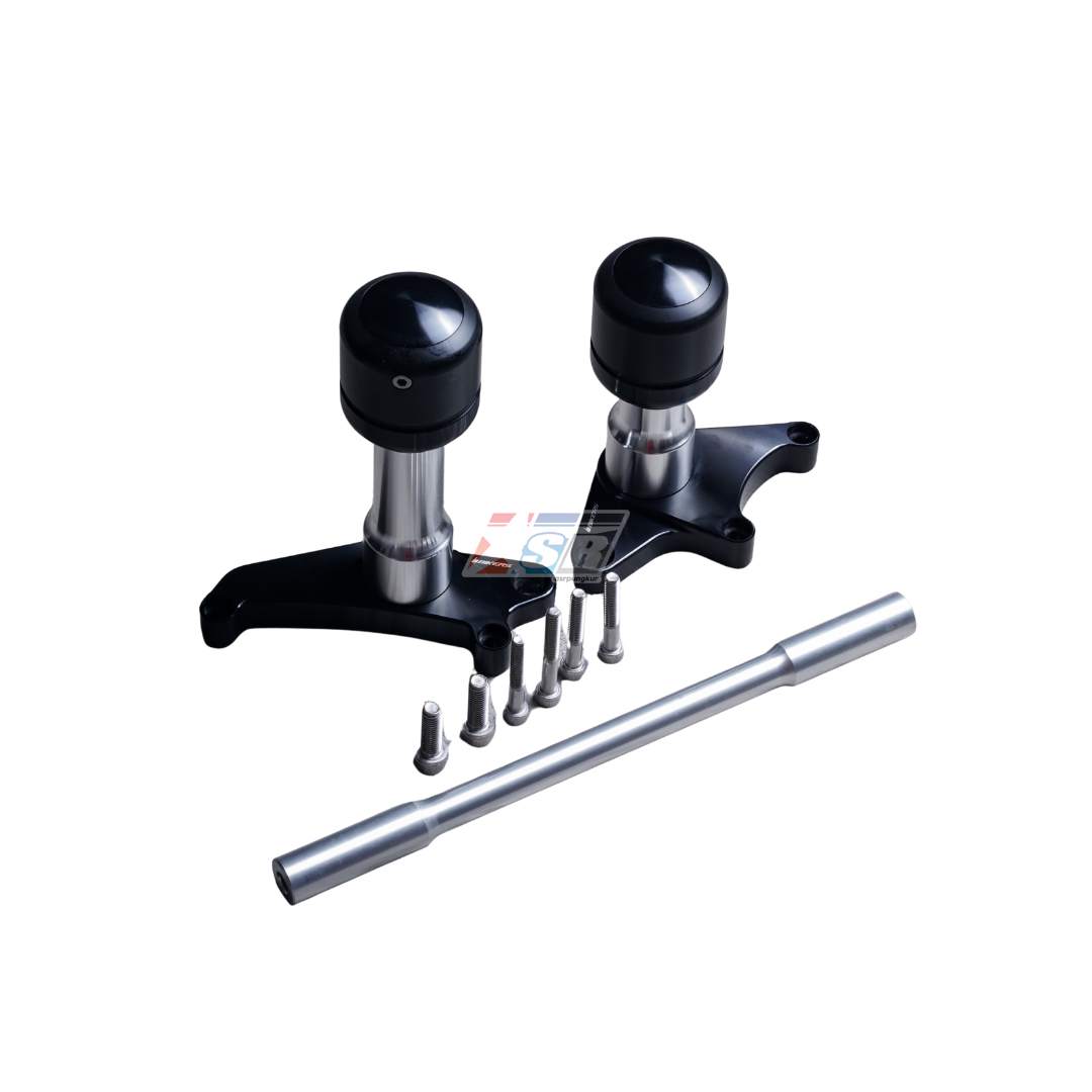 - 🛡️ Perlindungan Fairing Maksimal: Dirancang secara strategis untuk menonjol keluar dari bodi, berfungsi sebagai bantalan peredam benturan saat motor ambruk. Ini sangat efektif melindungi fairing, tangki, dan komponen penting lainnya dari kerusakan parah yang memerlukan biaya perbaikan mahal.