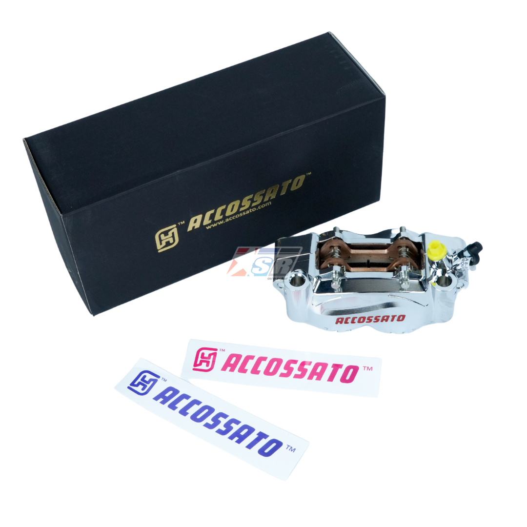 Kaliper Rem Radial Accossato PZ012 Kanan adalah kaliper performa tinggi yang memadukan desain racing dengan tampilan premium Chrome. Dibuat melalui proses CNC Billet dari aluminium, kaliper ini terdiri dari 2 bagian yang presisi. Model PZ012 dirancang untuk sepeda motor yang menggunakan jarak lubang baut (umum pada Moge Jepang).